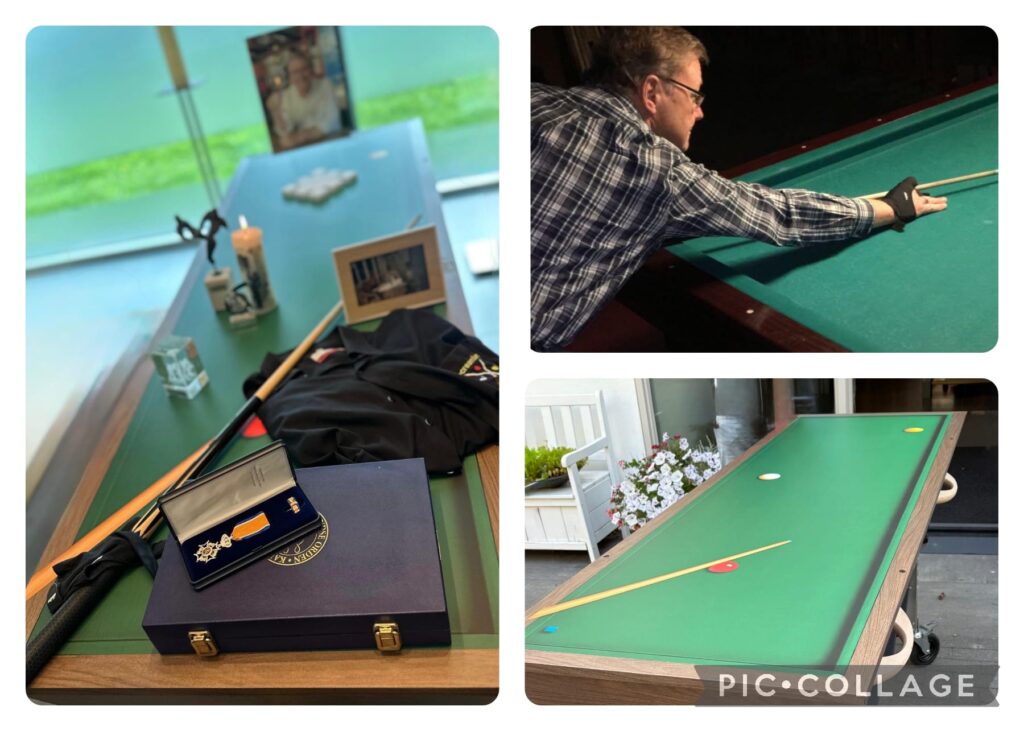 De schoonzoon van Jan, Sander, had zelf de kist voor zijn schoonvader gemaakt. Een kist met daarop een prachtige afbeelding van een biljartlaken, een biljartkeu en biljartballen.